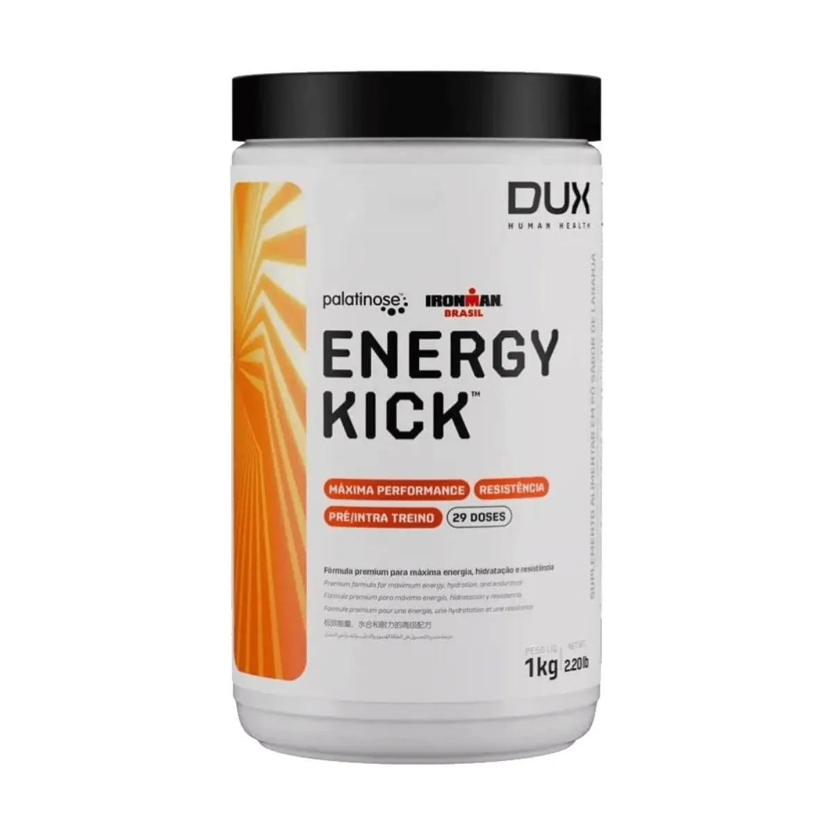 Dux Energy Kick é um pré e intra treino para esportes de alta performance, que oferece um aporte imediato e duradouro de energia, para resultados superiores em treinos e competições, através da combinação de 31g de carboidratos, 600mg de taurina e 382mg de eletrólitos.